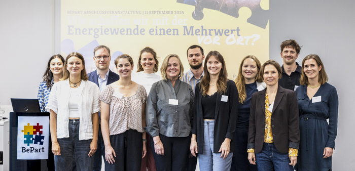 Am 11. September 2025 fand die Abschlussveranstaltung des Projektes BePart statt, das die Rolle von Beteiligung in Energieprojekten untersucht. Im Mittelpunkt standen die Präsentation der Studienergebnisse, praxisnahe Erfahrungen und Handlungsempfehlungen für Politik, Wirtschaft, Verbände und Projektentwickler*innen.